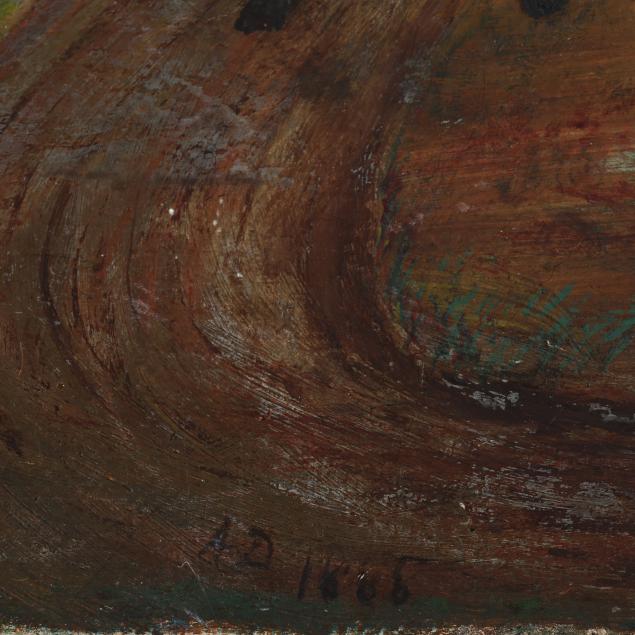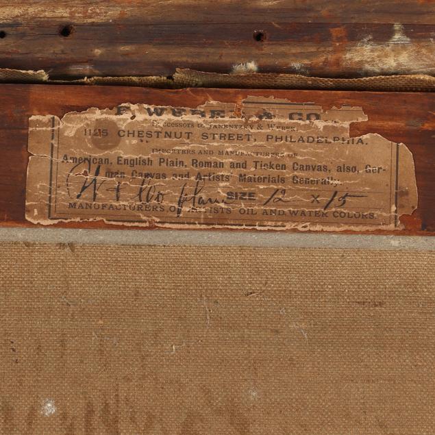Oil on canvas, 1886 or 1888, not signed, dated at lower right, with art suppliers label of F. Weber & Co., Philadelphia to stretcher, presented in a period giltwood frame.