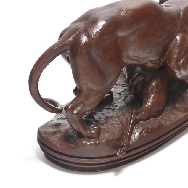 Late 19th century, patinated bronze casting after a model by Antoine-Louis Barye, signed "BARYE" to the naturalistic terrace.