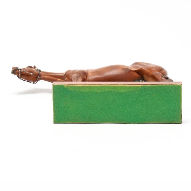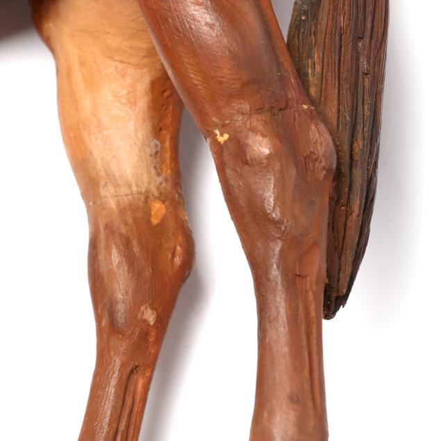Paint loss and break to paper halter; break and repair with associated restoration and fleabites to all legs and head of horse; small loss to tip of tail.