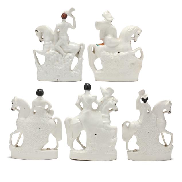 From the Estate of the late Peggy Augustus, Old Keswick, Virginia A few minute areas of paint loss and gilt rubbing to all; small abrasion to posterior of the princess's horse and hairline to underside; break and repair to top of horse's tail on Prince Albert figure; break and repair to Duke of Cambridge horse's head.
