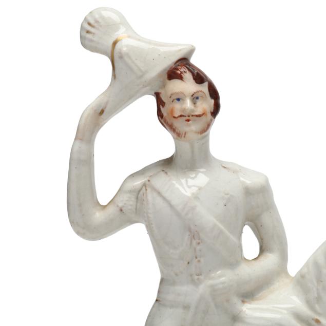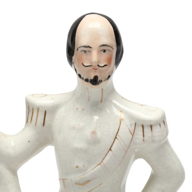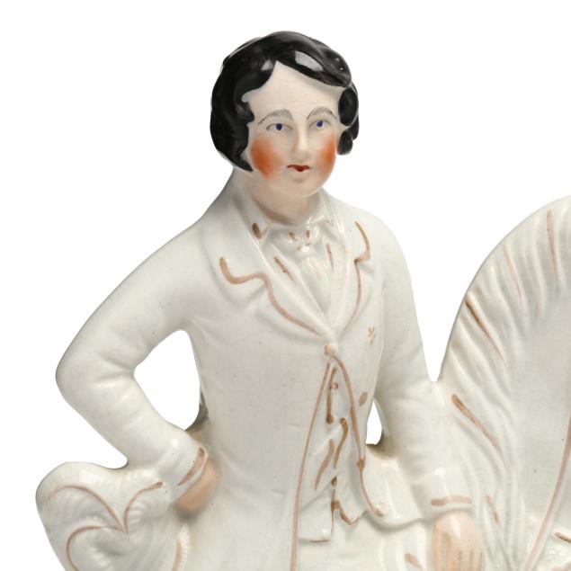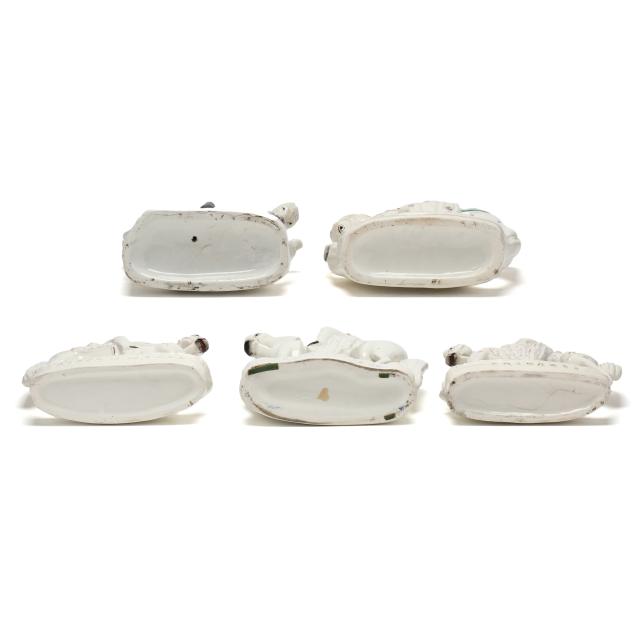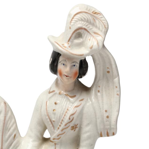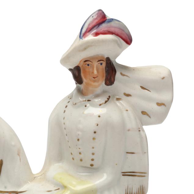 England, mid-late 19th century, (5) hand-painted and gilt pearlware flatback and fully-formed figures, to include Queen Victoria, Prince Albert tipping his hat, the Prince and Princess of Wales, and the Duke of Cambridge.