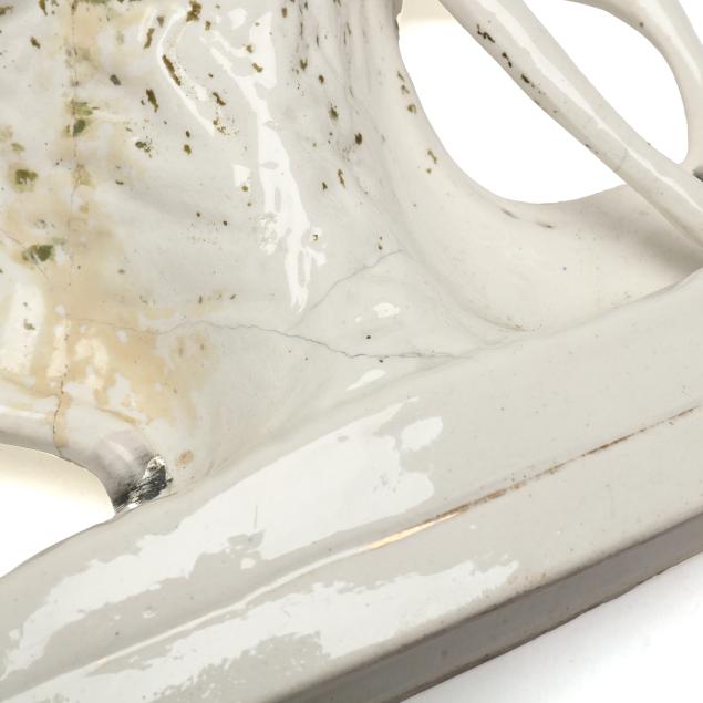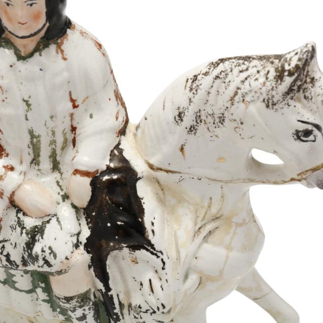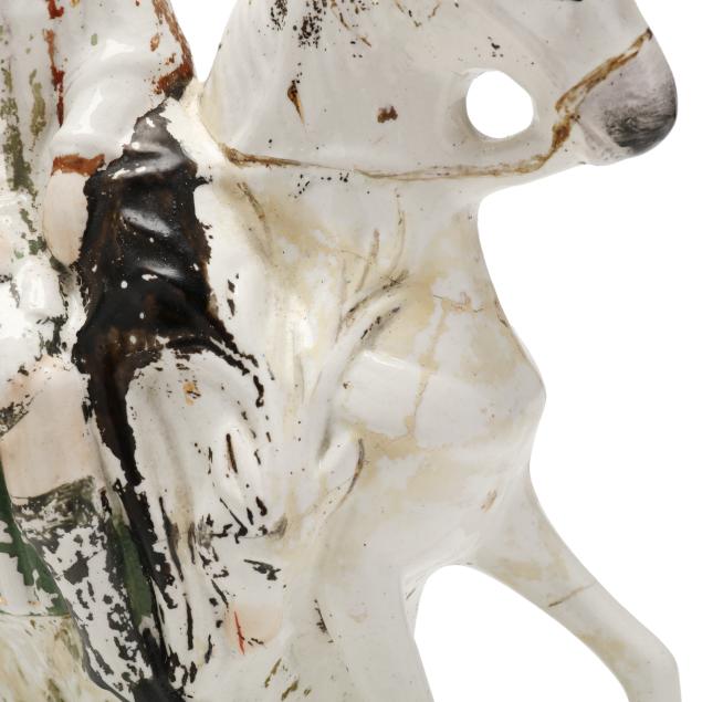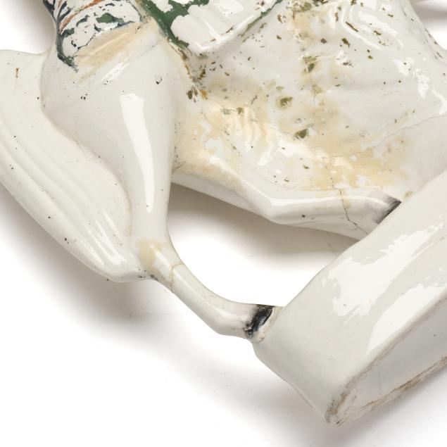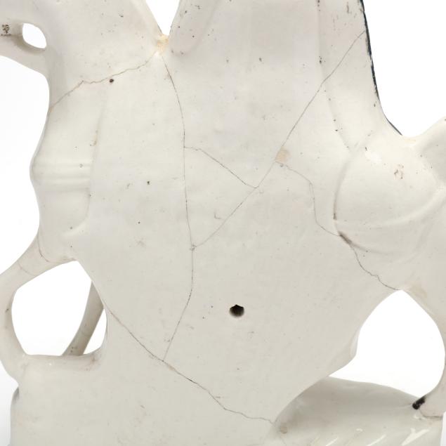 From the Estate of the late Peggy Augustus, Old Keswick, Virginia Several breaks and repairs to one highlander with associate paint touch ups; possible paint touch ups to another highlander; and a few small firing cracks to unpainted highlander.