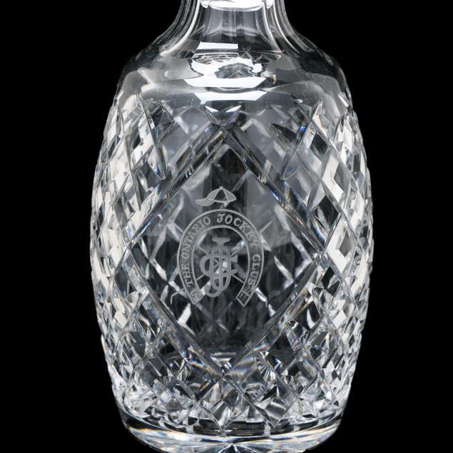 Late 20th century, spirit decanter with stopper, engraved with "THE ONTARIO JOCKEY CLUB" logo to body and company mark to base.