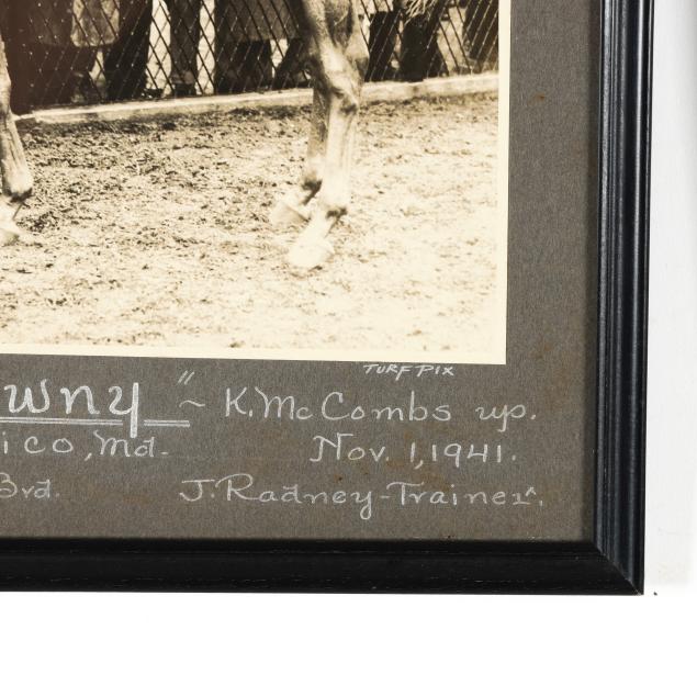 From the Estate of the late Peggy Augustus, Old Keswick, Virginia Each of these horses was owned by Mrs. E. H. Augustus, the mother of Miss Peggy Augustus; trained by J. Radney, and ridden by L. McCombs.