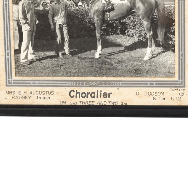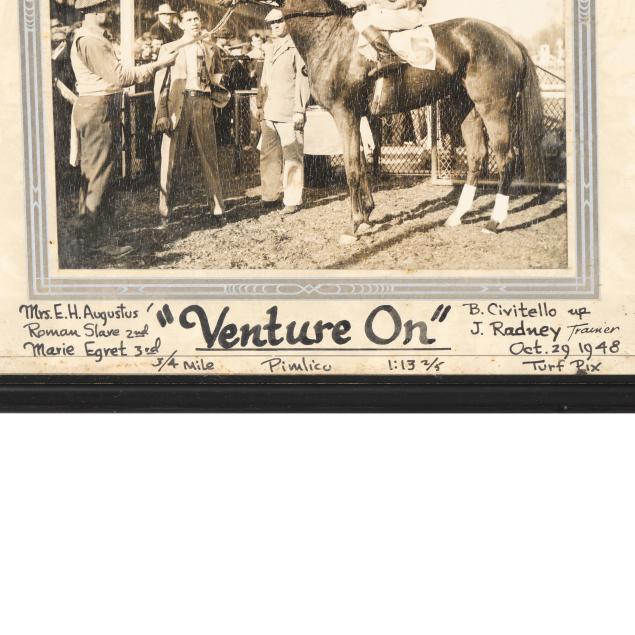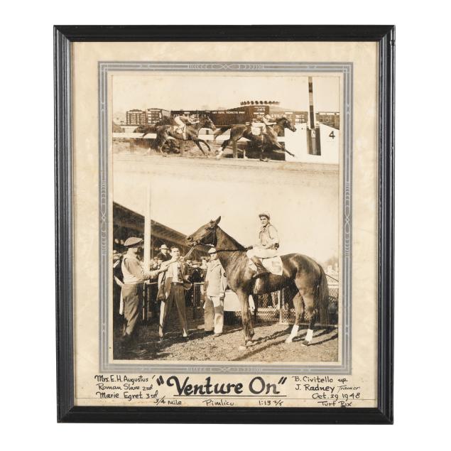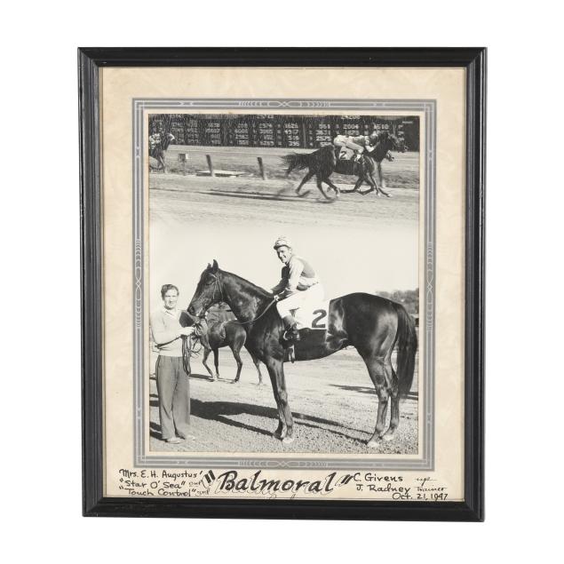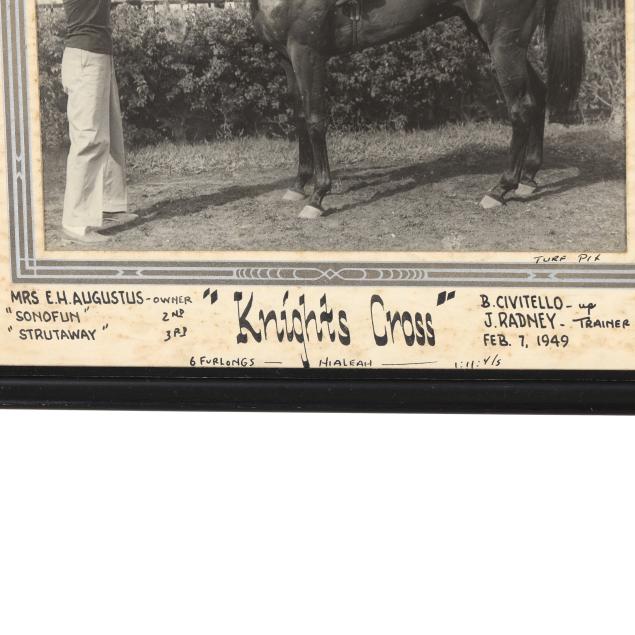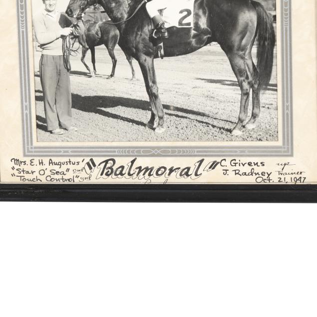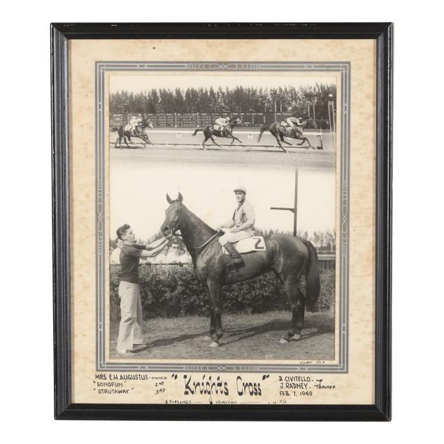 From the Estate of the late Peggy Augustus, Old Keswick, Virginia Each of these pictured racehorses were owned Mrs. E. H. Augustus, the mother of Miss Peggy Augustus; and trained by J. Radney.