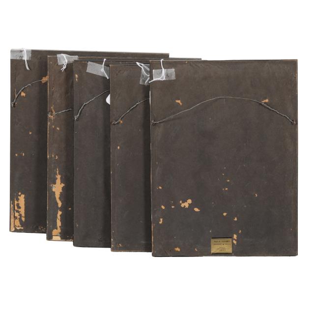 Spotting and staining to the mats, minor toning and spotting to the sheets; not examined outside the frames, one with crease through center.