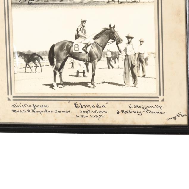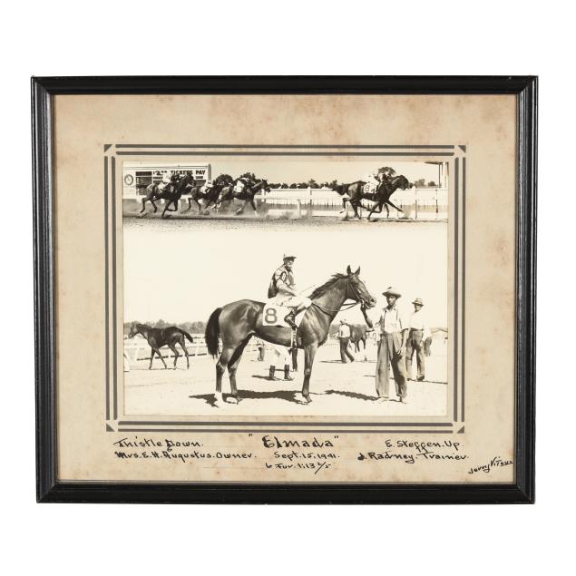 From the Estate of the late Peggy Augustus, Old Keswick, Virginia Each of these pictured racehorses were owned Mrs. E. H. Augustus, the mother of Miss Peggy Augustus.