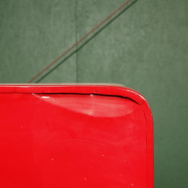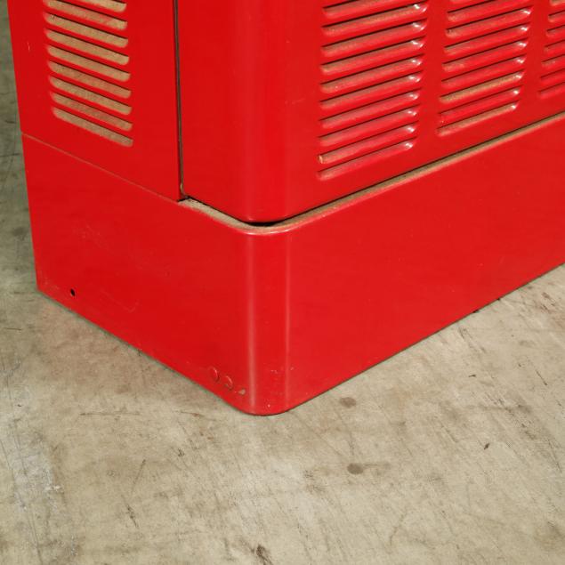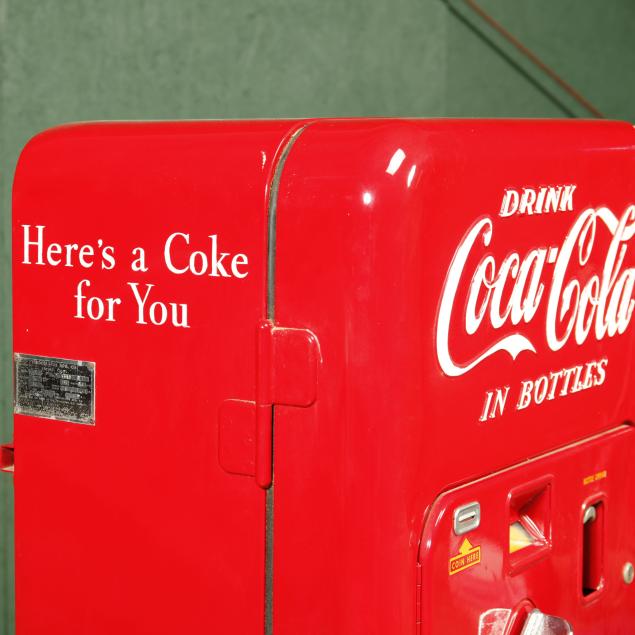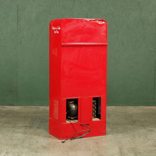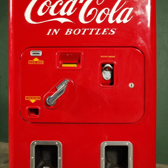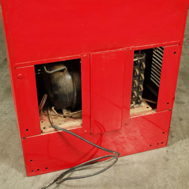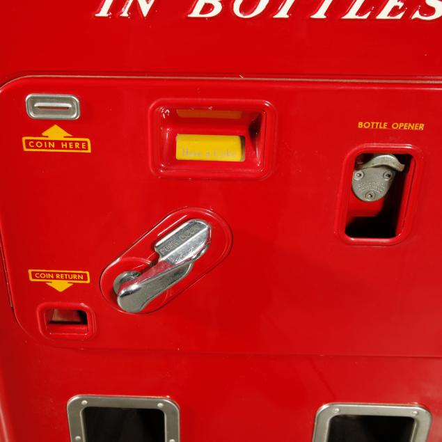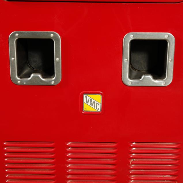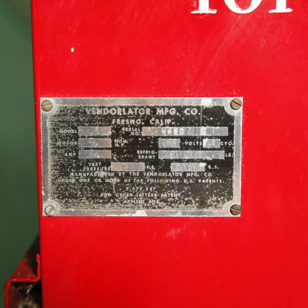 A restored Vendorlator V.M.C. 72 only produced in 1955. With a four vending hopper system, to hold 72 6.5 oz bottles. Smallest dual chute machine produced.