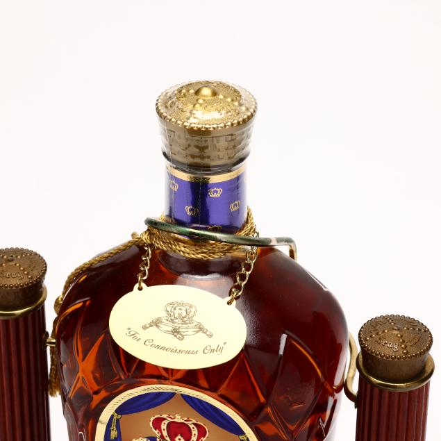 NV, Seagram's Crown Royal Fine De Luxe Blended Canadian Whisky, Joseph E. Seagram & Sons Limited, Waterloo, Ontario, Canada, 40%, 1996 bottling, bn, sealed, includes wooden pouring stand (1 1.75 L)