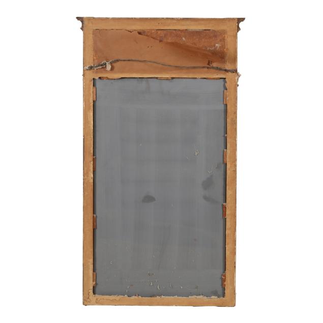 From the Estate of the late Peggy Augustus, Old Keswick, Virginia Scattered gilt rubbing and loss, some carving losses and molding losses; upper right corner of frame with crack and repair; some scattered egglonise losses to the perimeter; lower mirror is later with light silver degradation.