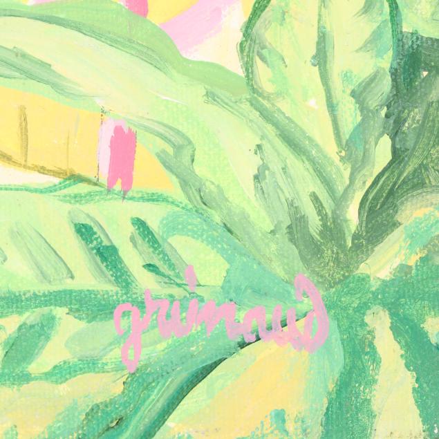From the Estate of the late Peggy Augustus, Old Keswick, Virginia William Grimaud is a painter trained at the University of Edinburgh, the Slade School in London, the Sorbonne in Paris, and in Spain. Working in a Post-Impressionist style, he is known for colorful still lifes, interiors, landscapes, and figure studies, often using bold line and textured brushwork.