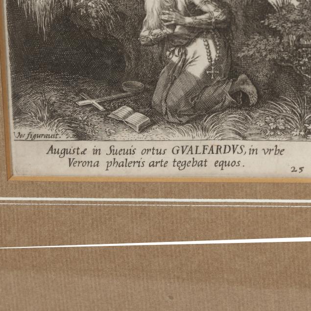 Copperplate engraving, circa 1595-1600, after Maarten de Vos (Flemish, 1532-1603), from the series