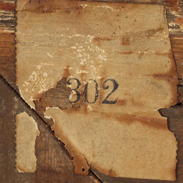 The canvas has been lined, with areas of retouching visible under UV light; minor frame losses.