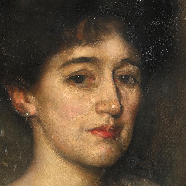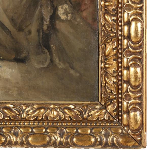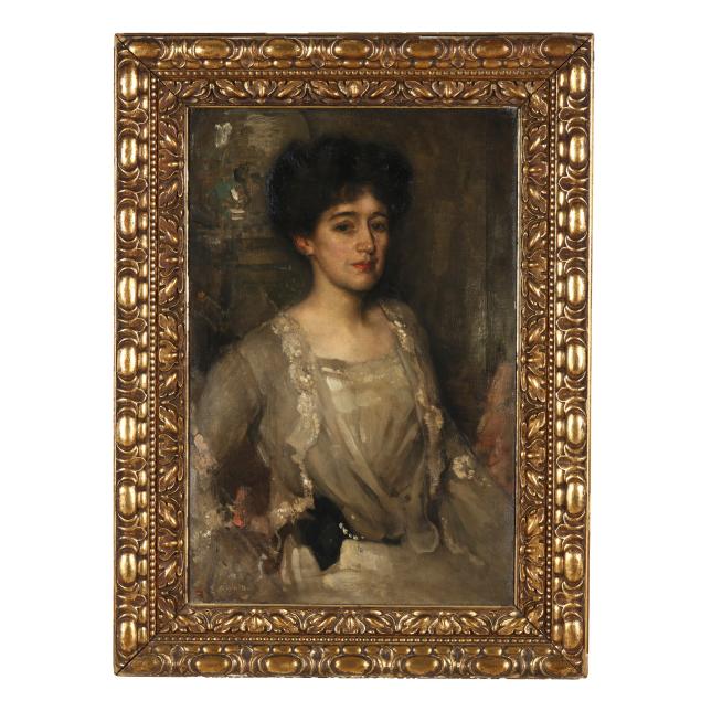 Oil on canvas (lined), signed at lower left, retaining exhibition label to verso, presented in the original carved giltwood frame with artist name stenciled to the verso.
