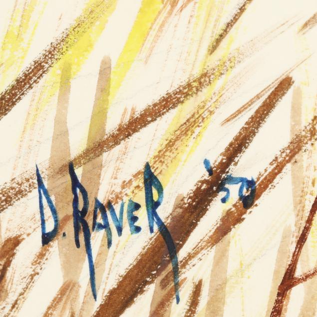 Duane Raver was a successful and sought after southern wildlife artist. Born in Iowa, he earned a bachelor's degree in fishery biology from the University of Iowa. Shortly after graduating, at the urging of a friend, Raver accepted a job with the newly formed NC Wildlife Resources Commission.