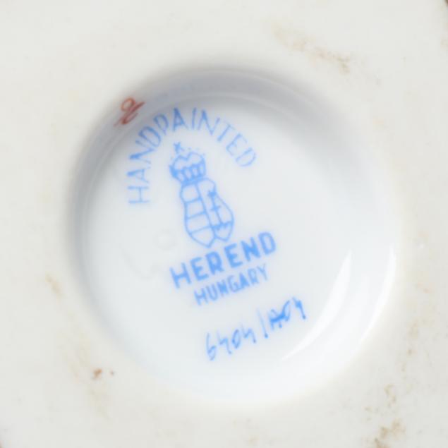 From the Estate of the late Lynette G. Totten, Butner, North Carolina Minute areas of enamel loss to both; a few losses to Herend bouquet enamel inserts.