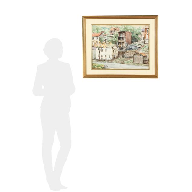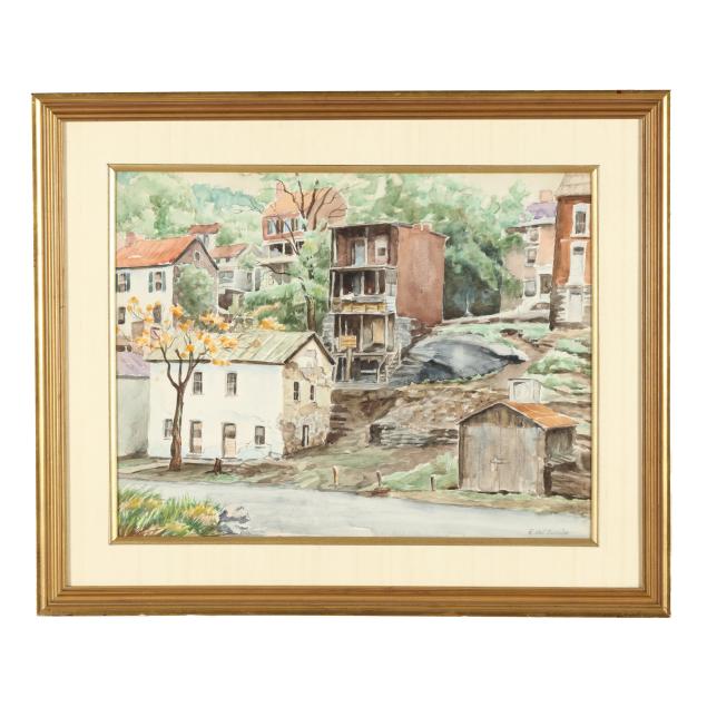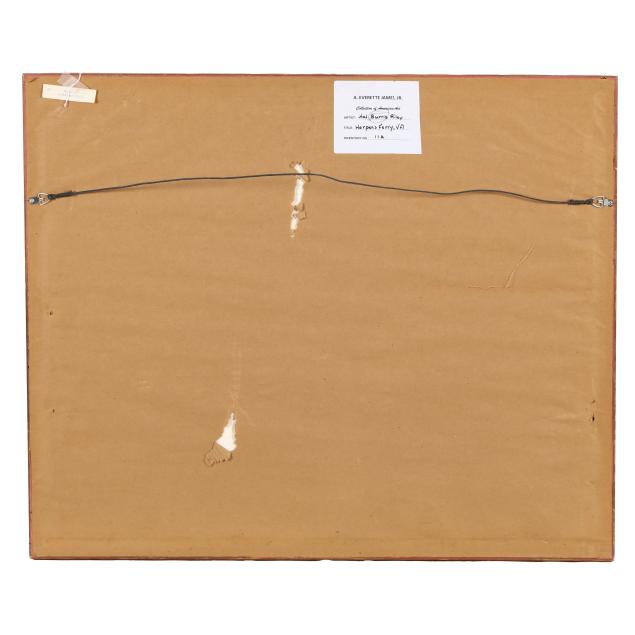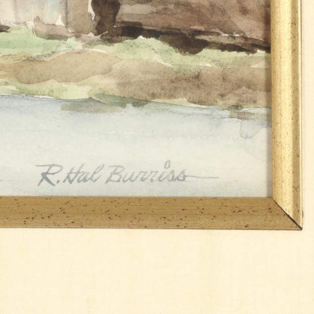 Watercolor on paper, signed at lower right, retaining labels to verso, matted and framed below glass.