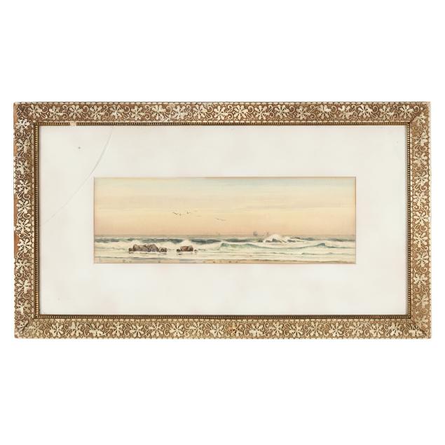 By the 1870s, Bricher had turned his focus to seascapes and the New England coastline, as well as Grand Manan Island and the Bay of Fundy, becoming known for luminous, tranquil depictions of marine light and atmosphere. A member of the American Society of Painters in Water Colors, he exhibited widely in major cities, including New York, Boston, Philadelphia, and Chicago.