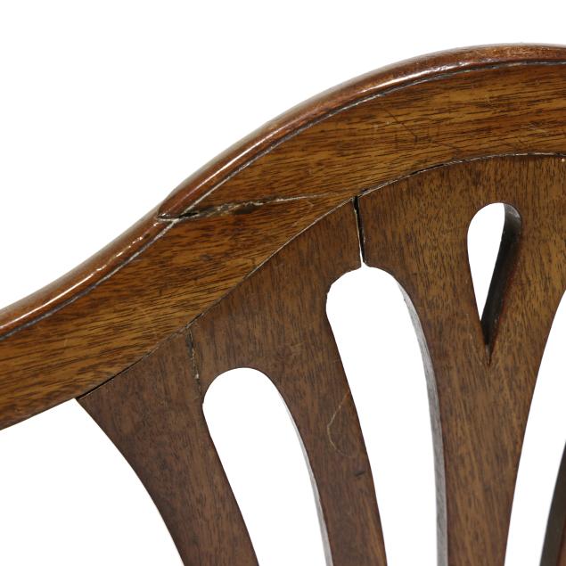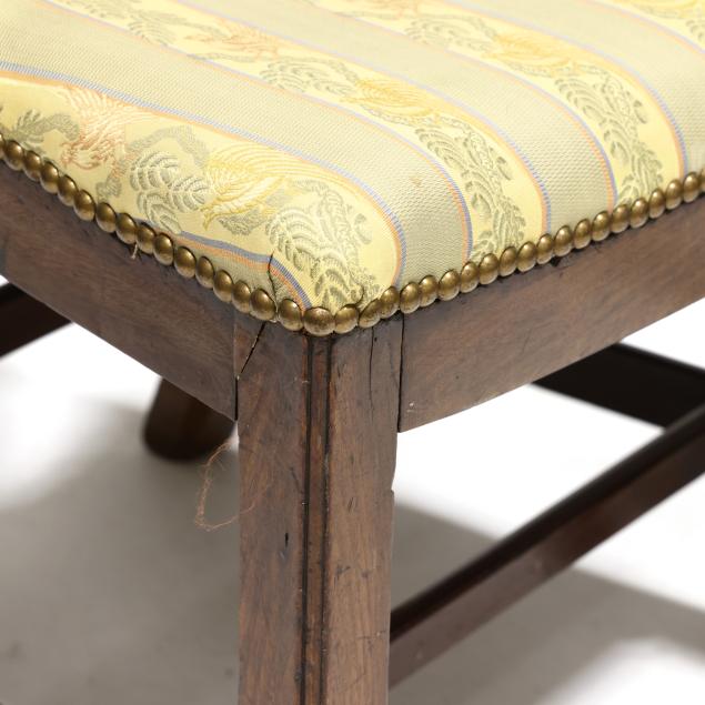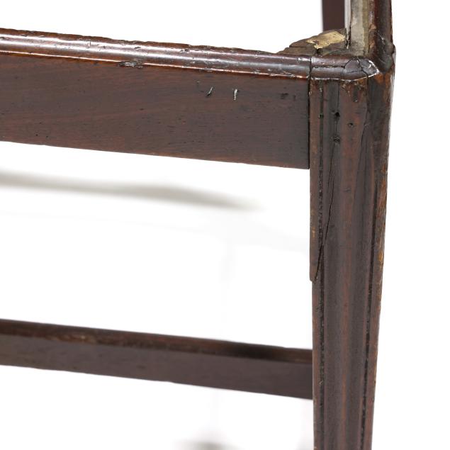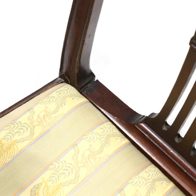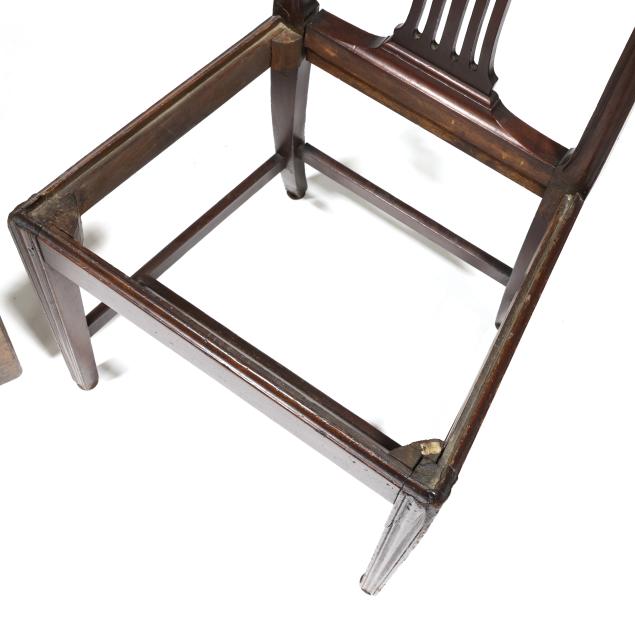 From the Estate of the late Peggy Augustus, Old Keswick, Virginia The first chair: break and repair to upper right stile; general wear; later upholstery.