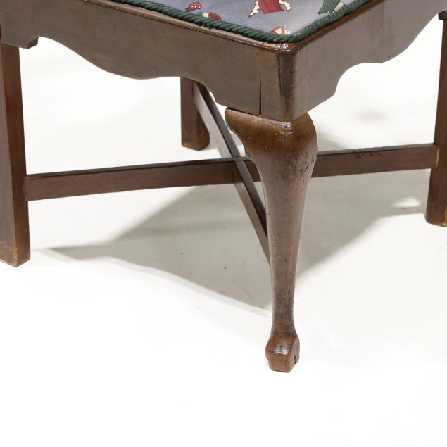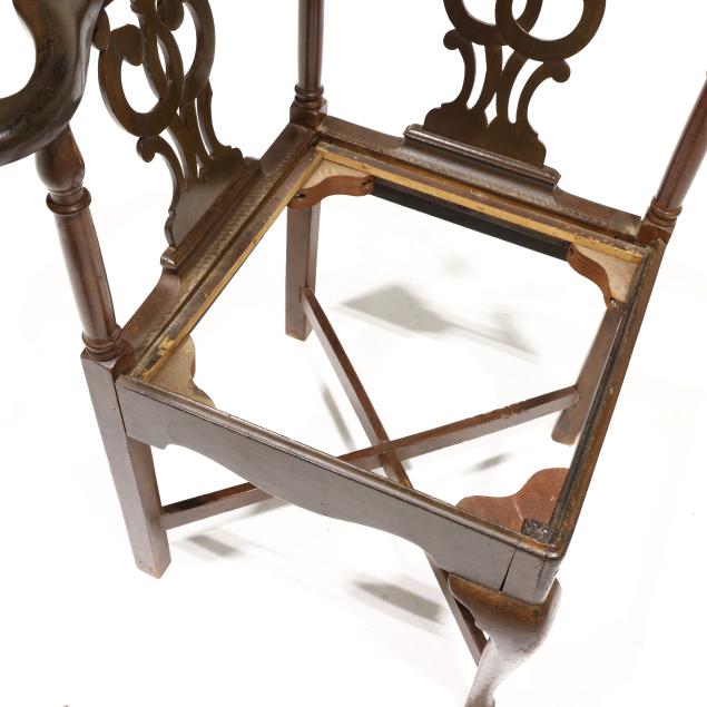 From the Estate of the late Peggy Augustus, Old Keswick, Virginia Fair condition; later seat; cabriole leg missing right side knee return and sections of pad foot; later seat blocking; left splat with break, repairs and loss.