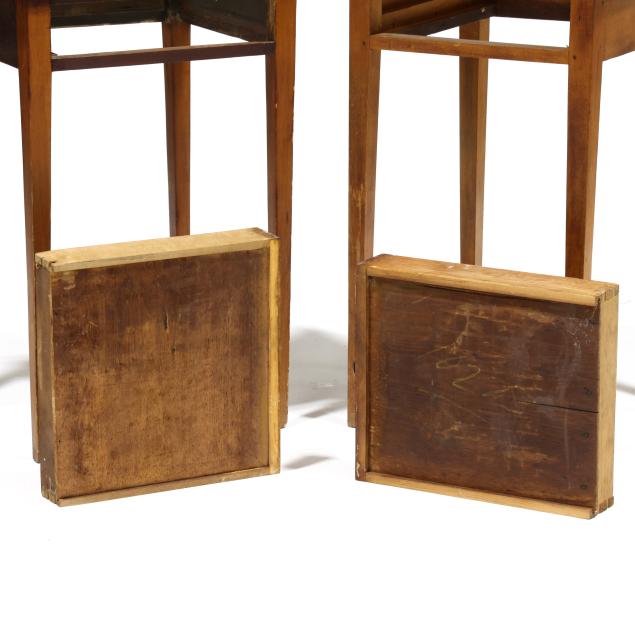 Early 19th century, the taller in maple with white pine secondary (27.5 x 16.75 x 16.25 in.); the shorter in white pine with poplar secondary (26.5 x 18 x 15.5 in.); each with square tapered legs.