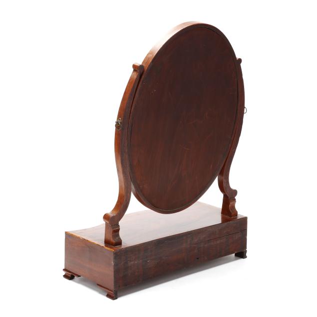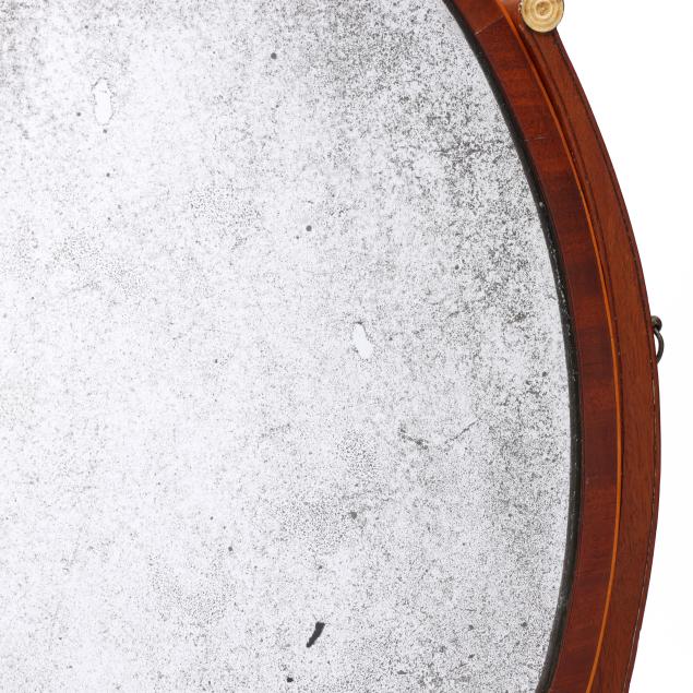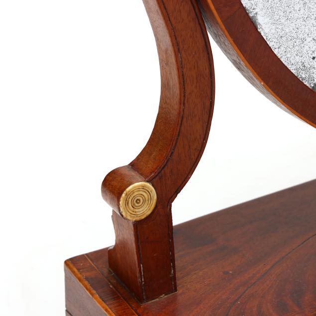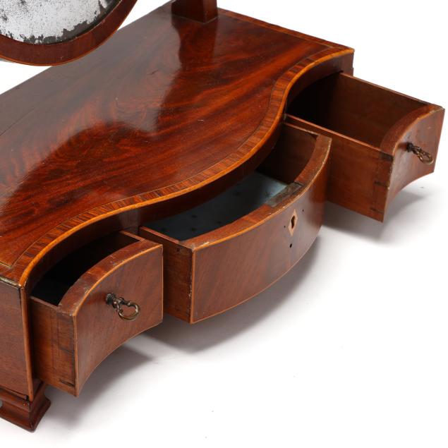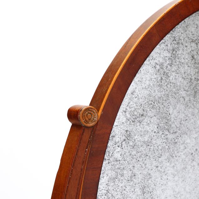 From the Estate of the late Peggy Augustus, Old Keswick, Virginia Silver loss to mirror; some minor veneer chips; no key; later feet.