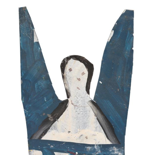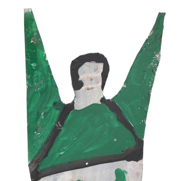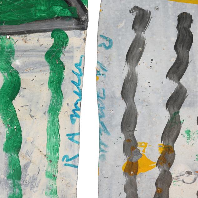 From the Estate of the late Susan C. Frankenberg, Hillsborough, North Carolina Self-taught folk artist, Reuben Aaron Miller, is known for his whirligigs, metal cutouts, and drawings. Born in Rabbittown, Georgia, Miller lived on the same property where he was born most of his life. He gained widespread fame in 1984 after the band REM filmed "Left of Reckoning" among Miller's whirligigs.