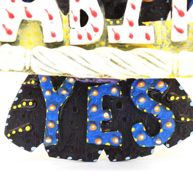 From the Estate of the late Susan C. Frankenberg, Hillsborough, North Carolina Peter Loose is a self-taught artist who is known for his unique birdhouses and animal shaped dulcimers, as well as his signature bright and brash paintings featuring unconventional palettes and saturated, vivid, dot-filled surfaces. Loose's work reflects his deep love of animals and time working as a naturalist in Athens, Georgia. Most of his works are made with repurposed, found objects like roofing shingles, old canvas, window screens, and discarded wooden boards.