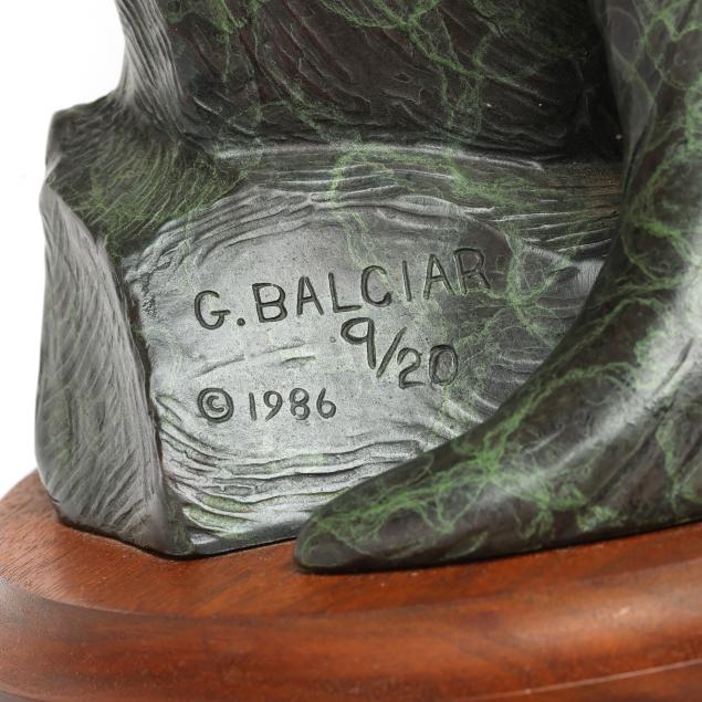 1986, patinated bronze, edition number 9/20, signed and dated "G. BALCIAR / © 1986" to the rockwork, mounted atop an oval walnut base, underside retaining gallery label.