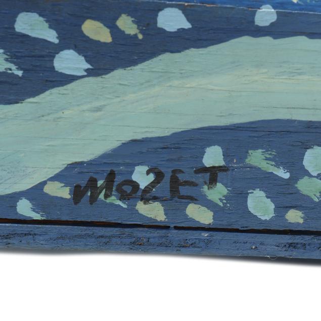 From the Estate of the late Susan C. Frankenberg, Hillsborough, North Carolina Mose Tolliver was born to sharecroppers near Montgomery, Alabama. After a severe injury in the late 1960s, he turned to painting as a means to combat boredom and pain. Tolliver's work has been exhibited in the Smithsonian American Art Museum, Washington, D.C., the Metropolitan Museum of Art, New York, the American Folk Art Museum, New York, and the Montgomery Museum of Fine Arts, Montgomery, Alabama.
