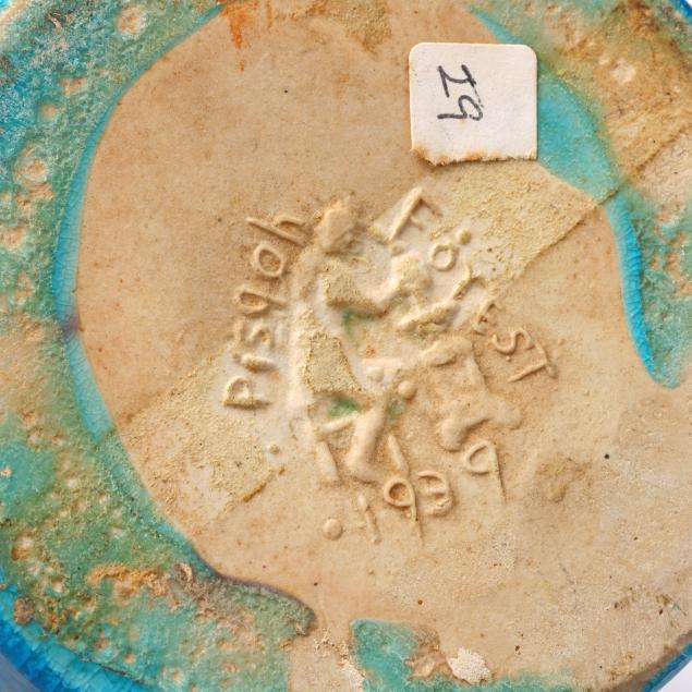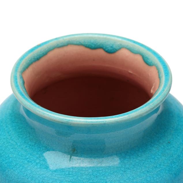 Turquoise vase with small chip to base; otherwise good estate condition.
