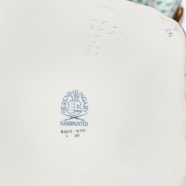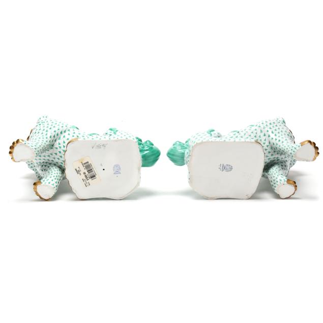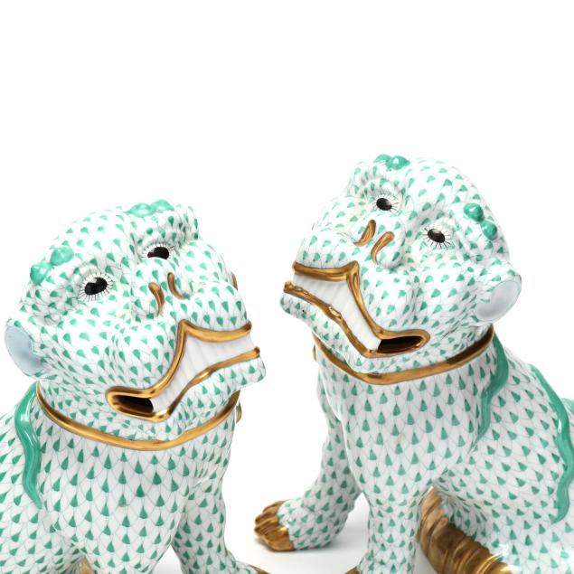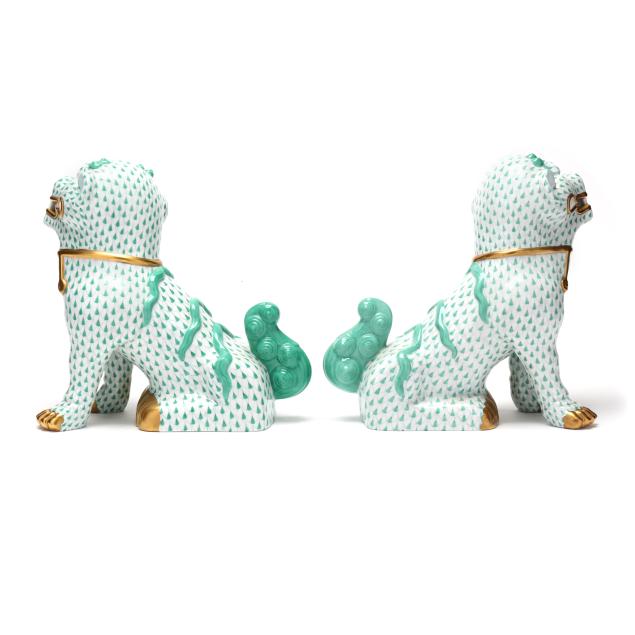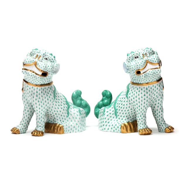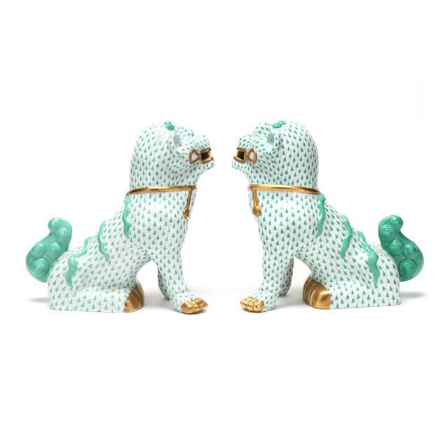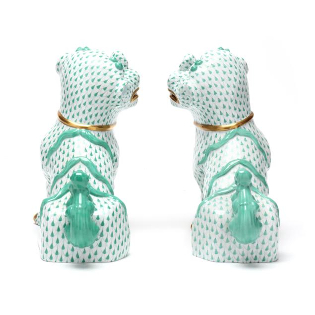 Pair of Herend Green Fishnet Porcelain Foo Dogs