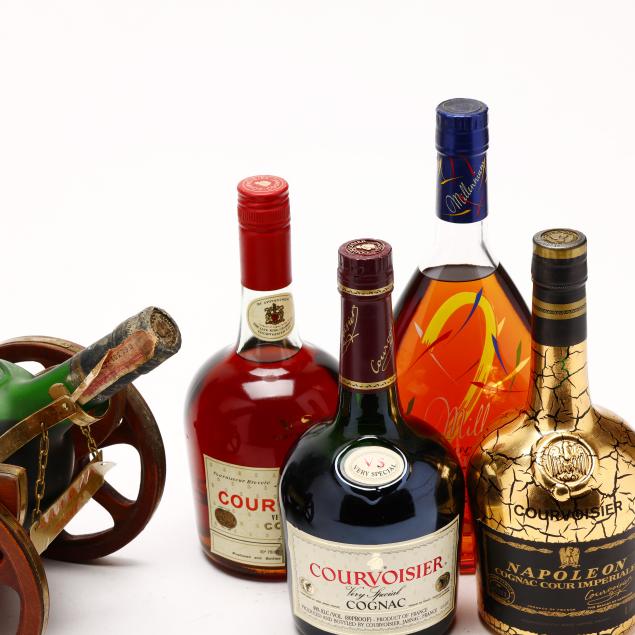 NV, Courvoisier Cognac, VSOP Fine Champagne, France, 40%, 1977-1982 bottling, htms, lscl, sealed, includes wooden cannon pourer (1 750 ml)