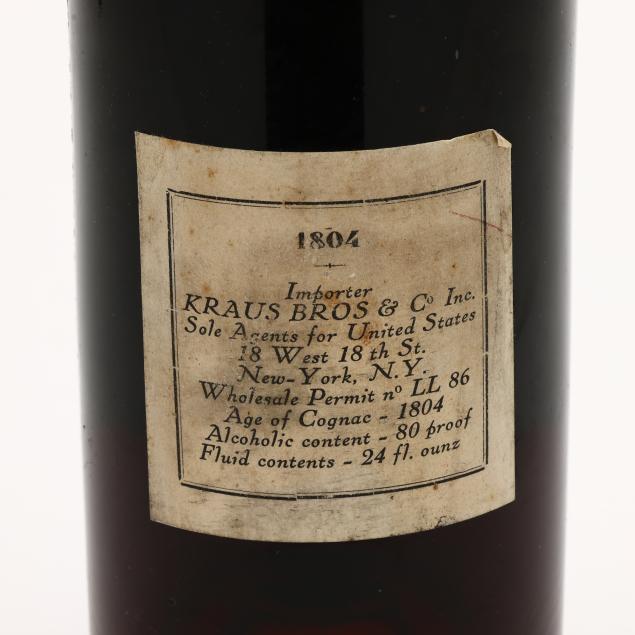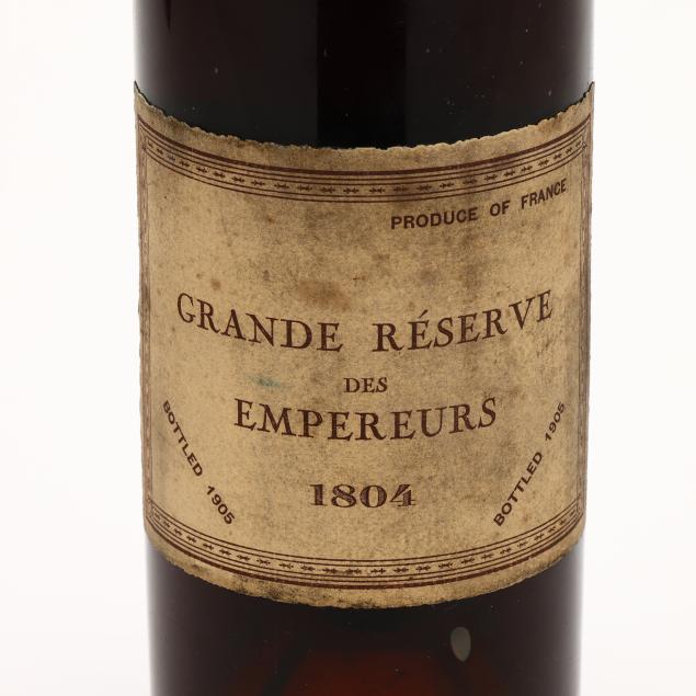 Vintage 1804, Grande Reserve des Empereurs Cognac, Imported by Kraus Bros & Co Inc., 40%, bottled in 1905, ls, lbsl, torn capsule and top of cork, sealed, 24 fl ounces (1 )