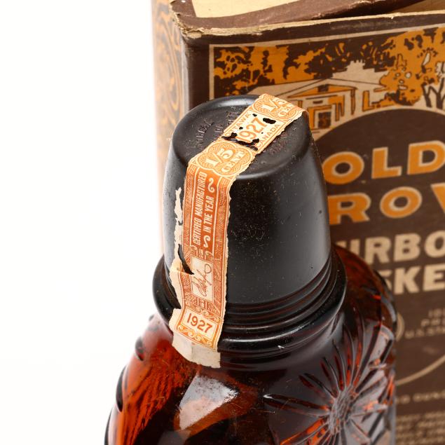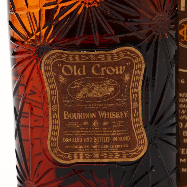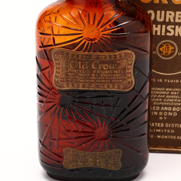 NV, Old Crow Bourbon Whiskey, Spiritus Frumenti, Distilled and Bottled in Bond, Aged in Wood, Consolidated Distilleries Limited, Montreal, Canada, 50%, 1927 bottling, slightly less than 2/3 full, lscl, slightly nicked tax strip, sealed spiderweb bottle, ocb (1 Pint)