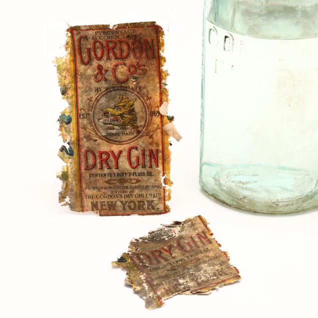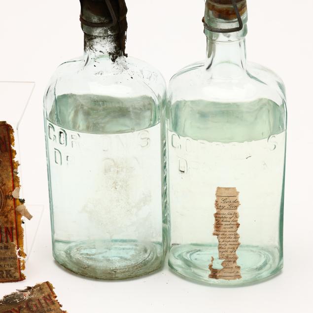 NV, Gordon's Dry Gin, London, England, 45%-50%, thought to be early 1900s bottling, 2-approximately 3/4 full, includes label in bag, 2 sealed (2 4/5 Quart)