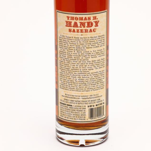 NV, Thomas H. Handy Sazerac Straight Rye Whiskey, Barrel Proof, Buffalo Trace Distillery, Frankfort, KY, 63.6%, fall 2017 release, limited Buffalo Trace Antique Collection Release, hs, sealed (1 750 ml)