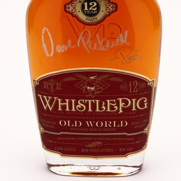 NV, WhistlePig Old World Straight Rye Whiskey, 12 Years Old, Shoreham, VT, 43%, signed by founder Raj Bhakta & late master distiller Dave Pickerell, hs, sealed (1 750 ml)