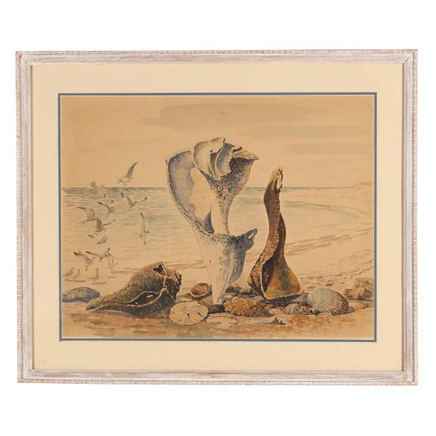 Raymond Bishop (American, 20th Century), Still Life with Shells on a Beach