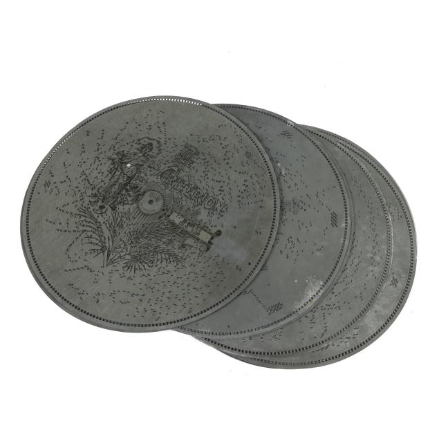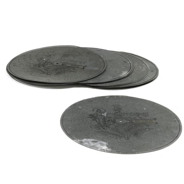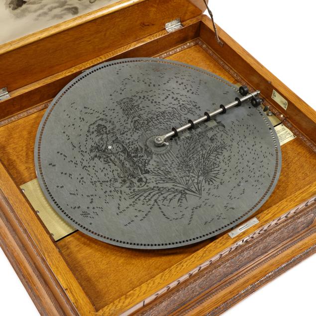 From the Collection of Wade Woodleif, Henderson, North Carolina Instrument operating with good sound at the time of evaluation; case in good condition, with some possible refinishing; some staining and denting to discs.