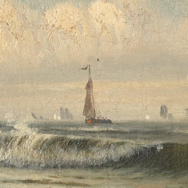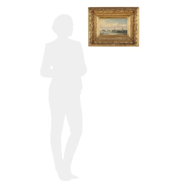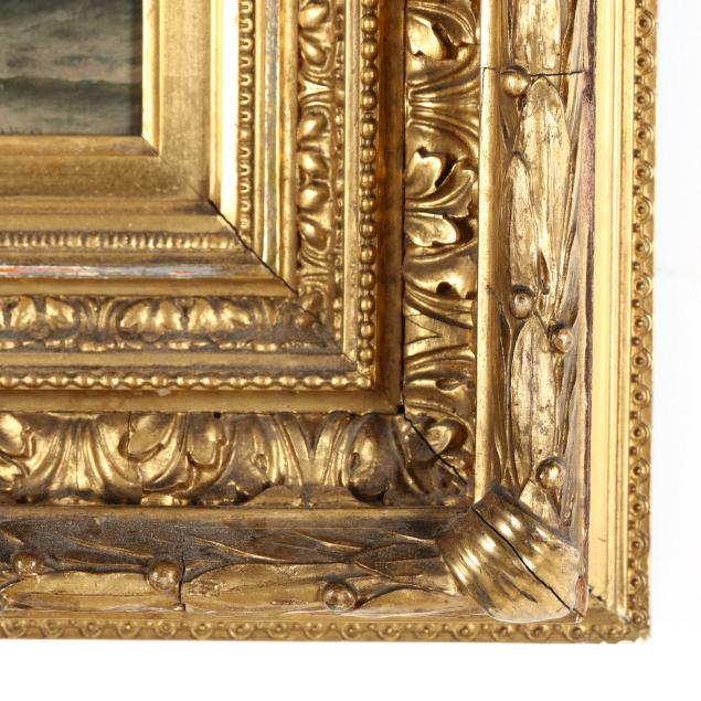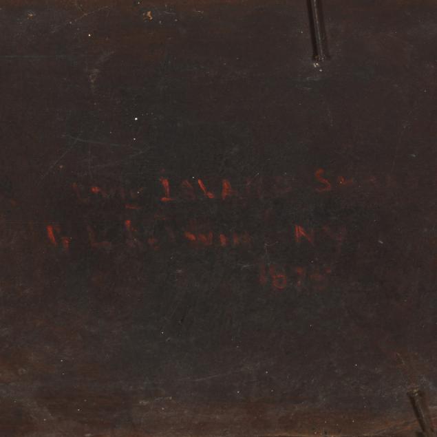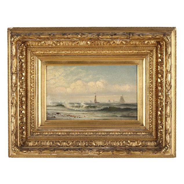 Oil on panel, 1875, signed at lower right, inscribed dated to verso "Long Island Sound / G. L. Baldwin NY / 1875," presented in a period giltwood composition frame.