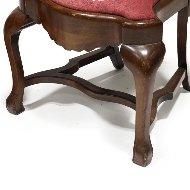 From the Estate of the late Susan C. Frankenberg, Hillsborough, North Carolina Surface wear and rubbing especially to crest rail, knees and feet; later upholstery.