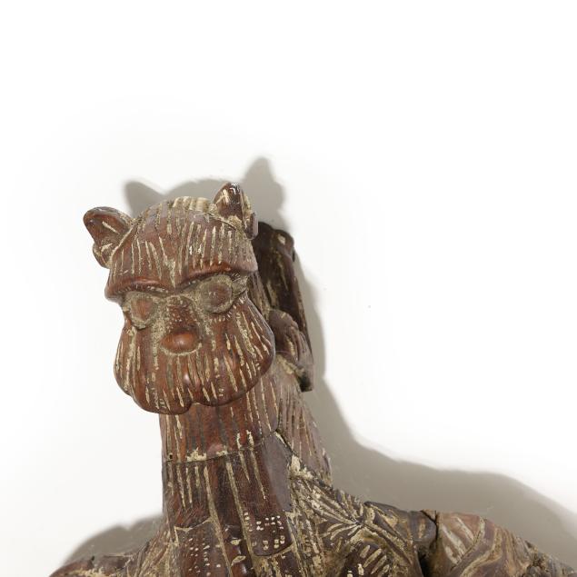 From the Estate of the late Susan C. Frankenberg, Hillsborough, North Carolina Loss to painted surface; some tight shrinkage cracks to the base (but stable); slight lean.
