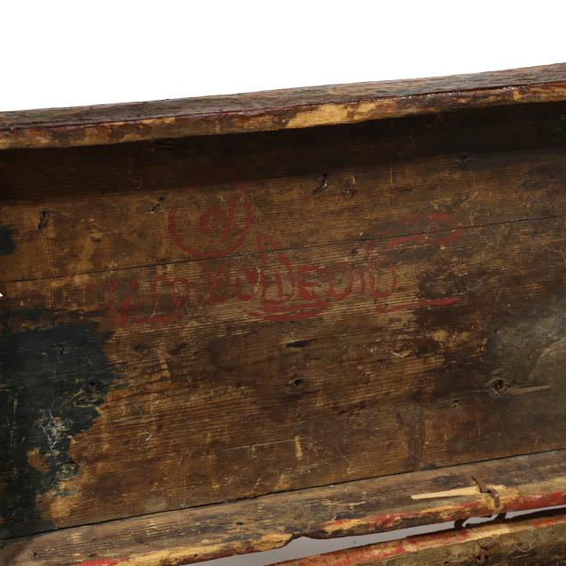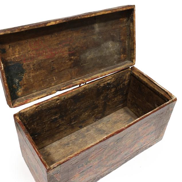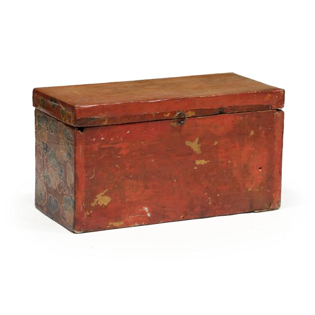 From the Estate of the late Susan C. Frankenberg, Hillsborough, North Carolina Surface wear and staining; likely later hinge with shadow marks of previous hinges to the lid; lacking base.
