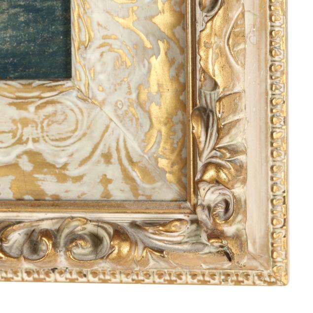Pastel on silk on board, signed at lower left, retaining an H. O. McNierney-Pajot, Inc. of Detroit, Michigan label on the verso, presented under glass in a period frame.