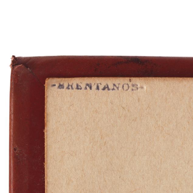 All three-quarter bound in blue, red, or green polished calf over cloth-covered boards, with gilt-stamped spines, ribbon bookmark, top edge gilt, and marbled endpapers; Brentanos ink stamp on first free endpaper verso. To include: