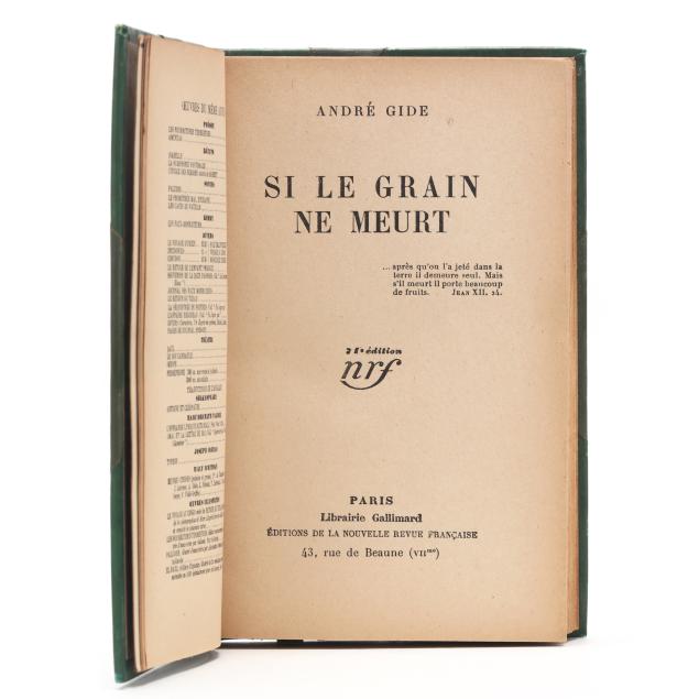 Si le Grain ne Meurt. Paris: Librairie Gallimard, Éditions de la Nouvelle Revue Français, 1935. Small 8vo; 372, [2]pp.