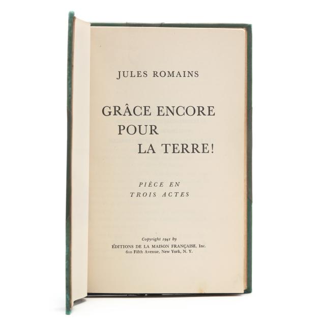 Grâce Encore Pour la Terre! New York: Éditions de la Maison Français, [1941]. Small 8vo; 199, [1]pp.