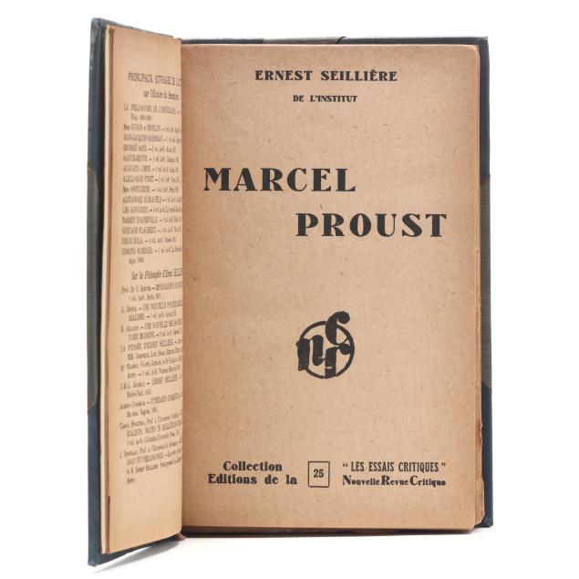 Marcel Proust. Paris: Editions de la Nouvelle Revue Critique, [1931]. 12mo; 297, [1]pp. No. 25 in the collection "Les Essais Critiques."