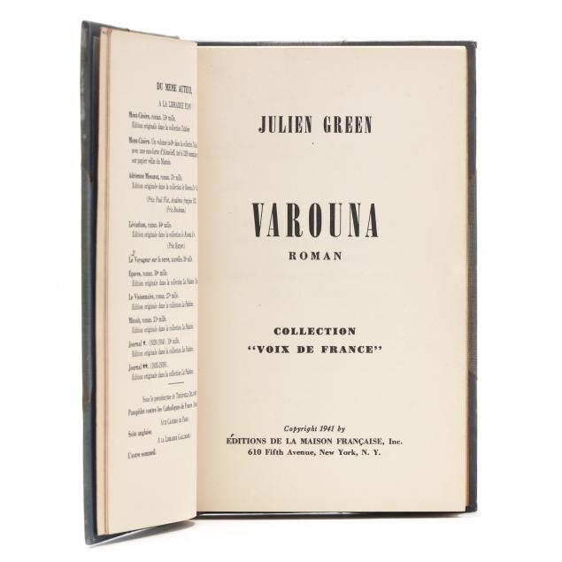 Varouna; Roman. New York: Éditions de la Maison Français, [1941]. 12mo; 279, [3]pp.